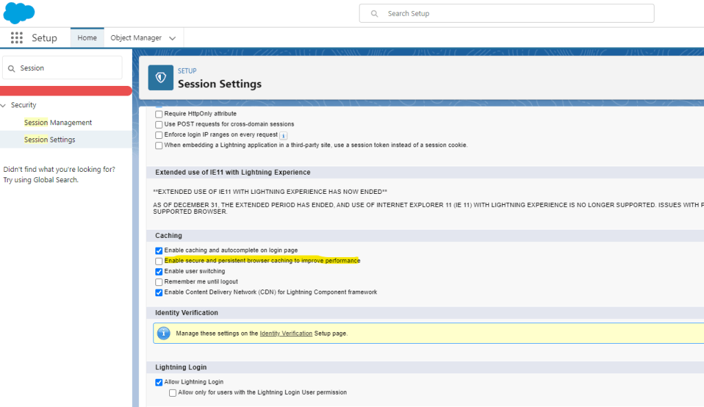 - Uncheck “Enable secure and persistent browser caching to improve performance”